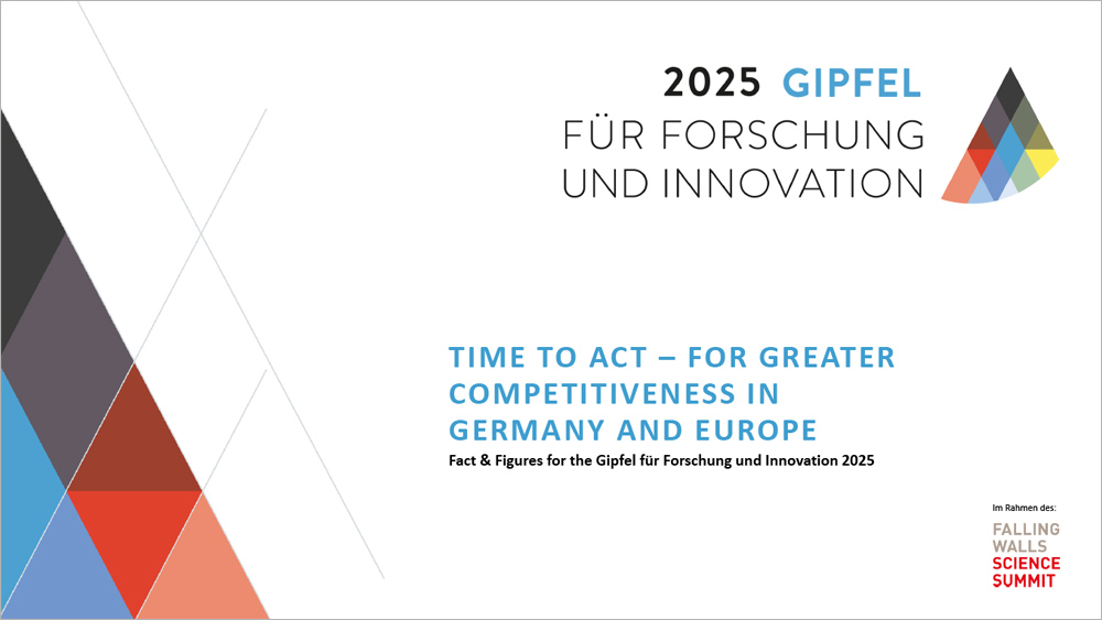 Against this backdrop, Germany and Europe need to proactively set the course for sustainable and future-proof competitiveness. The Summit for Research and Innovation 2025 (Gipfel für Forschung und Innovation 2025), held under the motto 'Time to Act –for Greater Competitiveness in Germany and Europe', aims to confront the pressing challenges of our time—transformability, cooperation, and security—by raising critical questions and developing practical solutions.